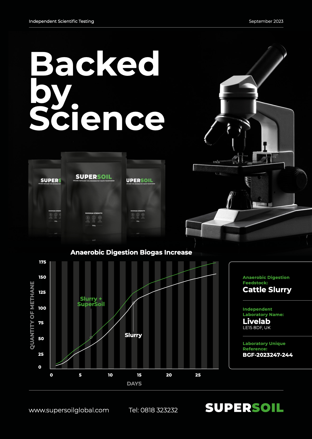 A typical 2MW anaerobic digester fed with cow slurry can make approximately €200,000 additional profit each and every year due to the increased methane production, even after paying for Supersoil.